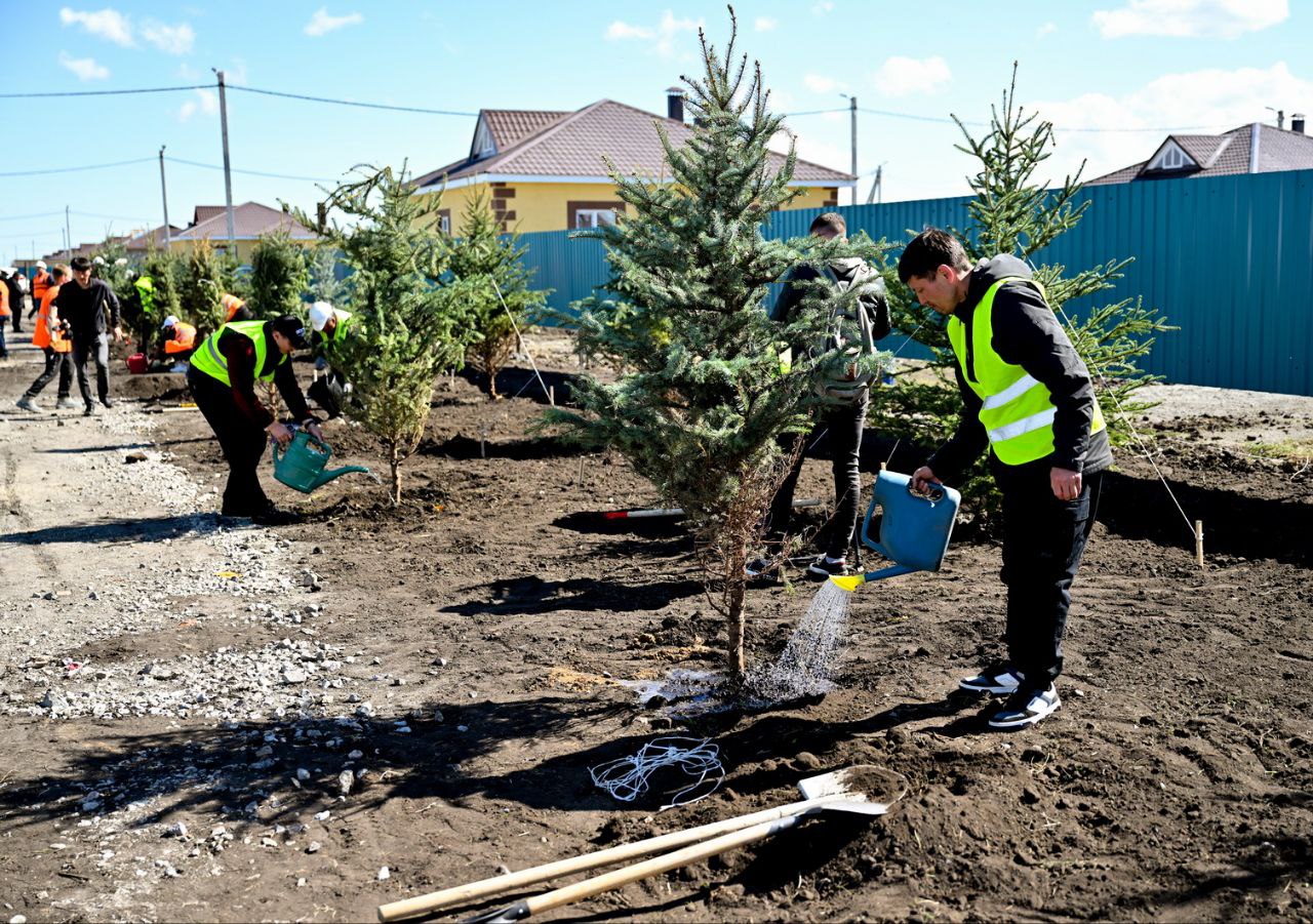 Деревья высадили в микрорайоне для пострадавших в Петропавловске