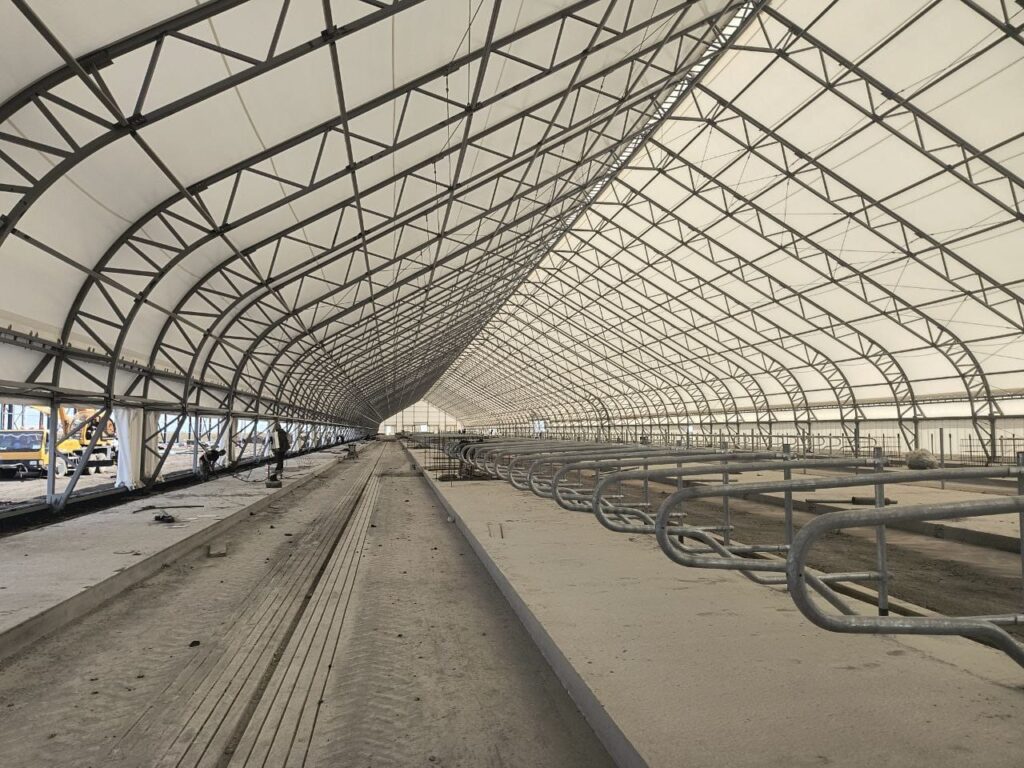 — На 90% готовы помещения для содержания скота на 850 мест. Сейчас ведутся внутренние работы, устанавливают необходимое оборудование. Параллельно завершаются работы на доильно-молочном блоке. Там будет установлен доильный комплекс «карусель» на 100 мест компании Westfalia. Это будет самая большая карусель в стране, обычно устанавливают комплекс на 50 голов. Сразу же строим помещения для телят. Общая площадь участка, занятого под ферму, составляет 62 га, — рассказал юрист компании Борис Аминов.