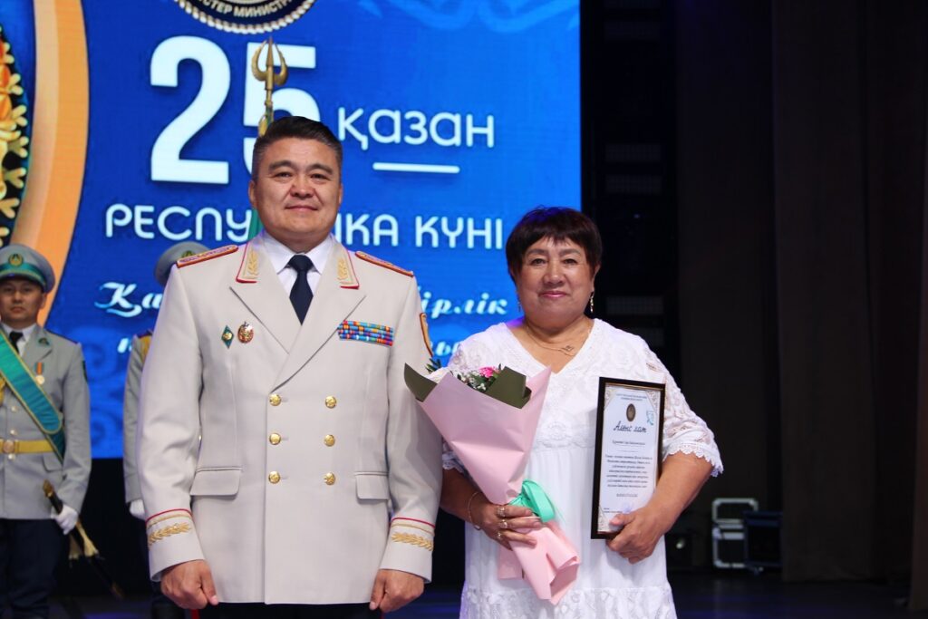 По доброй традиции поощрили и родителей полицейских. За достойное воспитание сыновей в духе патриотизма Кабдулдинов вручил благодарственные письма МВД РК Айман Алимтаевой, матери старшего оперуполномоченного Шалкара Оразбаева, и Алие Жолдасовой, матери следователя Рауана Кайратова и другим.