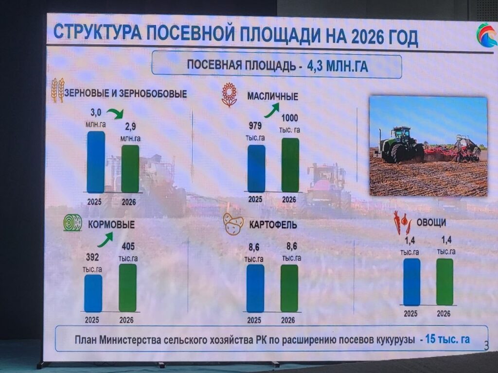 — В этом году планируется проведение посевной кампании на площади свыше 4,3 млн гектаров. В том числе 13,3 тыс. га с применением влагосберегающих технологий. Год характеризуется ранним наступлением весны. Это требует от всех более оперативной мобилизаций ресурсов и готовности к проведению полевых работ в сжатые сроки. В этих условиях первоочередной задачей становиться сохранение влаги в почве. Необходимо максимально эффективно использовать зимнее запасы влаги, минимизировать ее потери и строго соблюдать агротехнологии. Сегодняшний семинар-совещание направлен на выработку согласованных подходов к организованному проведению посевной кампании 2026 года. А также внедрению современных агротехнологий, цифровых решений и практических инструментов повышения эффективности сельхозпроизводства, — отметил Гауез Нурмухамбетов.