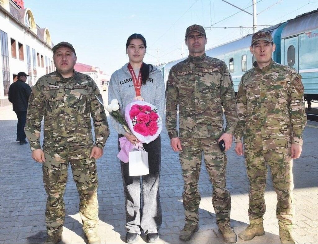 Петропавлда Алина Гарапты теміржол вокзалынан әріптестері қарсы алды.